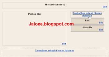 Untuk melihat, mengenal dan menambah halaman elemen, klik pada tulisan Tambahkan Sebuah Elemen Halaman yang di samping. dan akan muncul jendela baru elemen halaman untuk kita pilih dan tambahkan ke dalam blog kita.